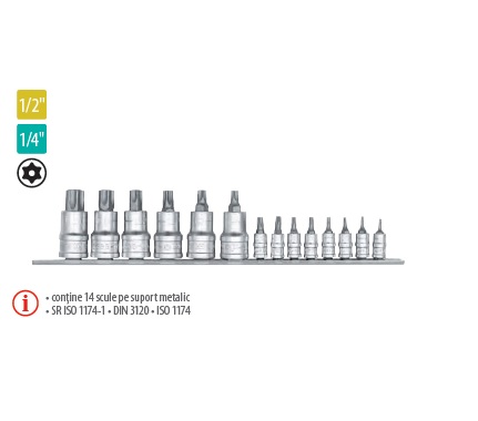 Set 14 capete tubulare cu bituri Tamper Torx 1/4”- 1/2”