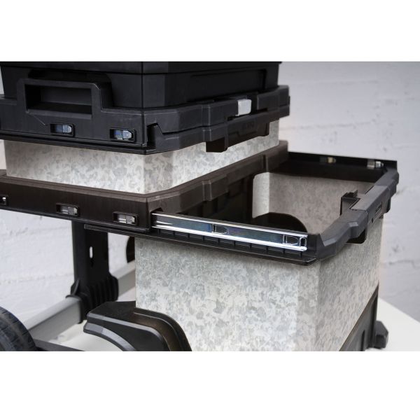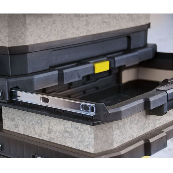 • Cutie de plastic si metal de 20” detaşabila cu tavă detasabila • Inchizatori mari de metal, cu strat anticoroziv • 2 Sertare adanci de 4” cu sine pe rulmenti • Cutii mari de metal pentru stocare, care oferă o capacitate suplimentară pentru instrumente • Pentru lucru intens cu roti de 7” • Sistemul „Consolă” pentru acces imediat la toate zonele de depozitare.